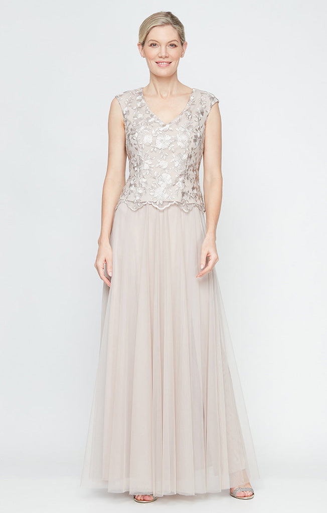 Regular - Long V-Neck Embroidered Stretch Tulle Gown