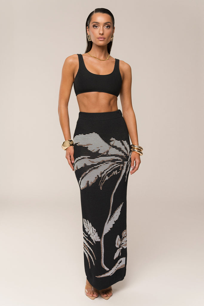 PRE-ORDER Sunset Red Hera Draped Maxi Skirt