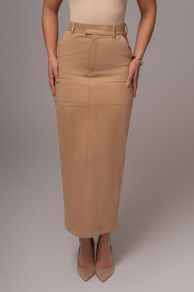 Beige Joy Suede Maxi Skirt
