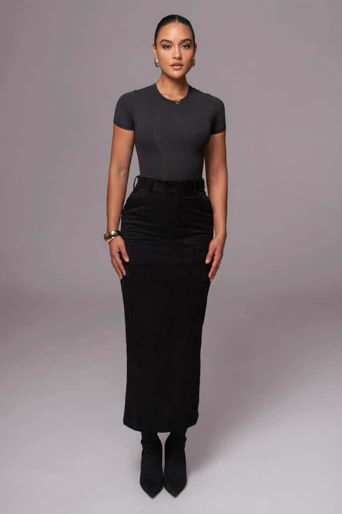 Black Joy Suede Maxi Skirt