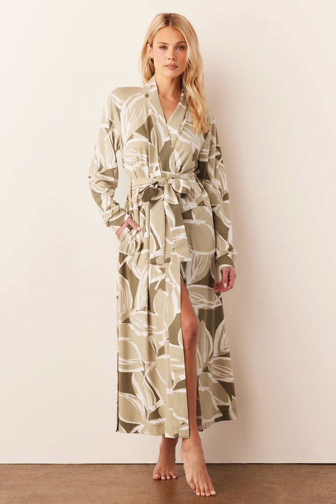 Skyler Cloud Jersey Banded Long Robe in Fern
